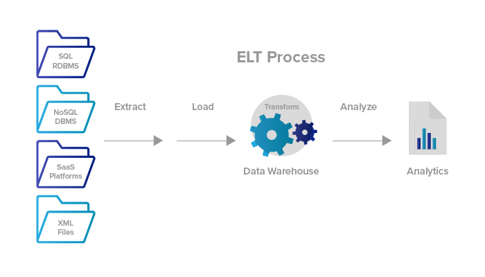 ELT can load all data immediately, and users can determine later which data to transform and analyze.
